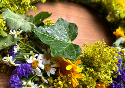 Neben dem Eingangsbereich am Südgiebel liegt die Terrasse und lädt zum Sitzen und zum Frühstück in der Morgensonne ein. Holzkohlegrill und Feuerschale stehen ebenso für Sie zur Verfügung und garantieren gemütliche Stunden. Der Garten mit seinen alten Bäumen lädt zudem zum Verweilen und Träumen ein.